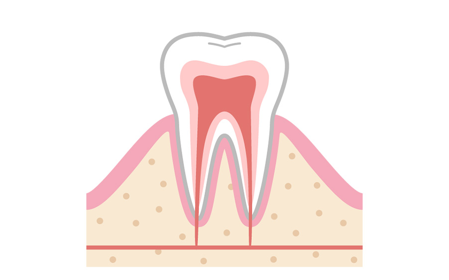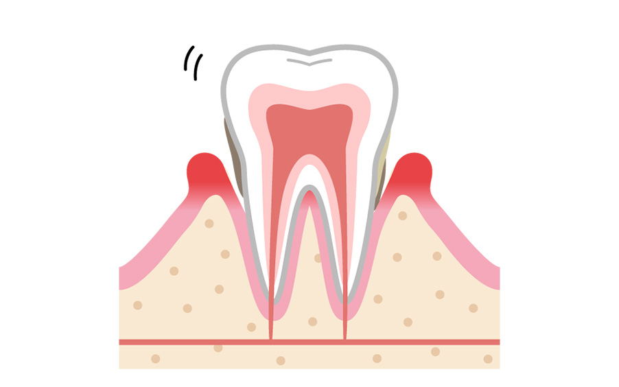 歯と歯ぐきのすき間である「歯周ポケット」は3~5mm程度で、歯を支えている骨が溶け始めた段階です。