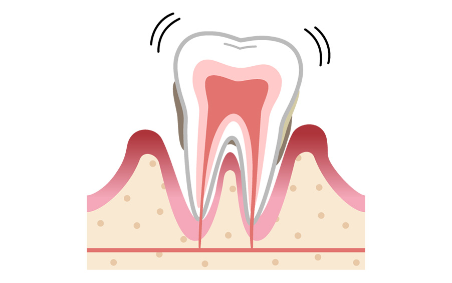 歯槽骨が大きく溶かされて、歯がグラグラするようになる状態です。